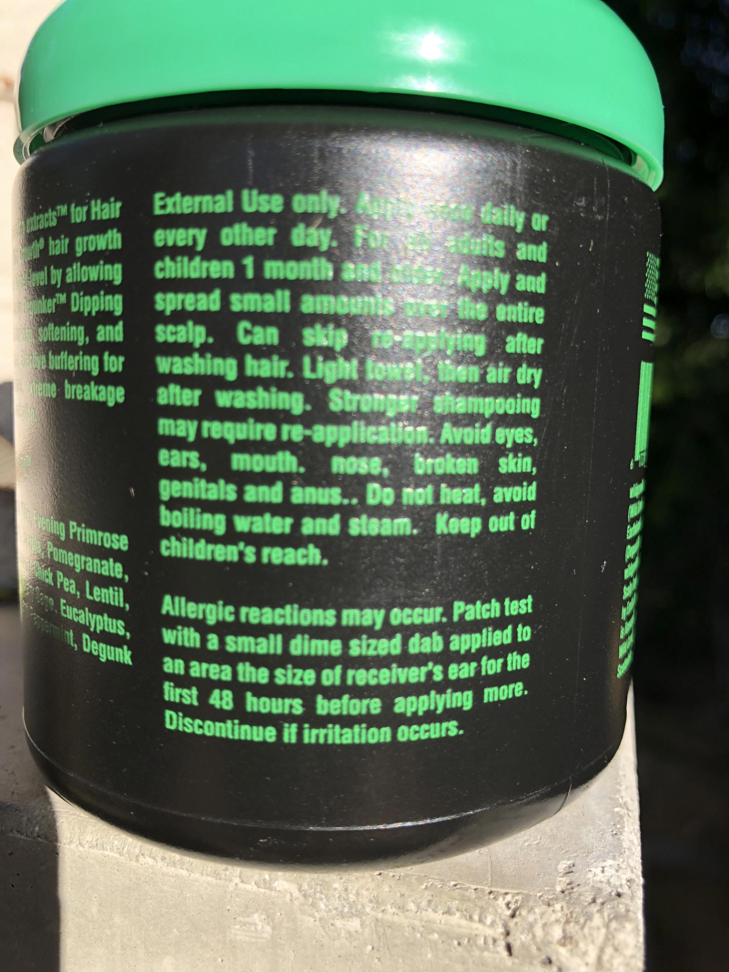 Degunk Ethos Compliant™ proprietary methods of packing multiplied power into already time proven Wild Growth® hair and scalp products . The formula goes to work immediately leaving no oily/sticky mess on hair and scalp since it penetrates into rather than linger on the surface. One 8 ounce jar contains alot of 'a little goes a long way'!
