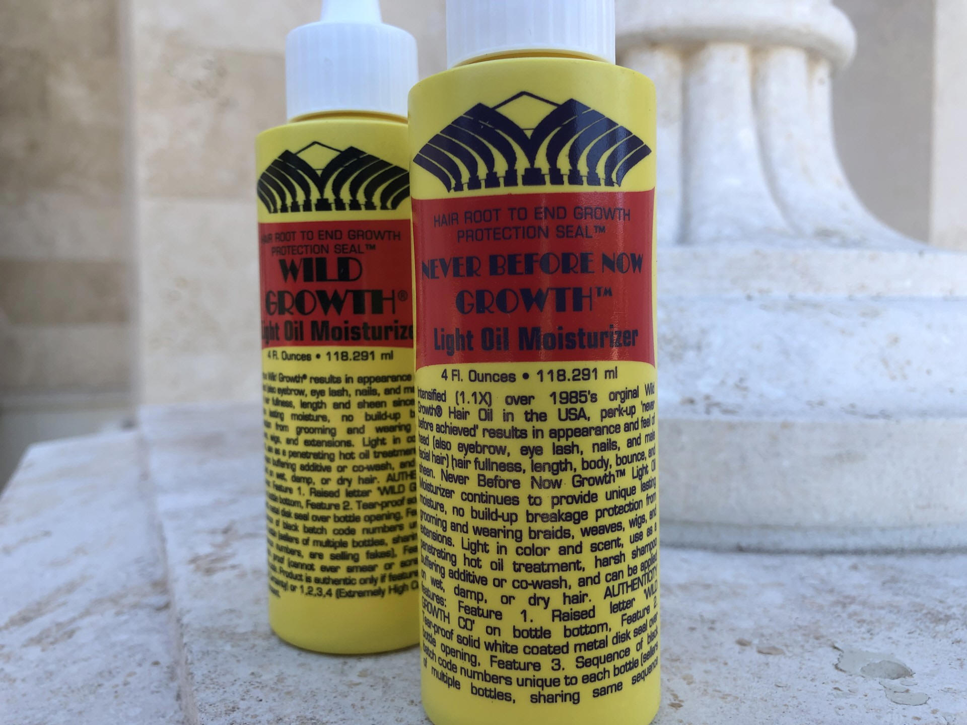 Wild Growth Co.'s first 1985 product, Wild Growth® Hair Oil, quickly earned the Moniker/name 'Wild Growth' when it was first referred to as product 'X' during several months of salon and field testing. Among other terms expressed by users during this period to describe results, the term 'Wild Growth' was adopted as the product's name and it's manufacturer adopted Wild Growth Co. as the company name. Over the span of 40 years since inception, consumer reported Wild Growth® Hair Oil or Light Oil Moisturizer results have been expressed in various but repeated ways which gave rise to Wild Growth® product testimonial categories within which consumer results were categorized. Now after forty years, Wild Growth Co. has gleaned a name from the sum total of ten's of thousands of user results expressions that regularly fall into repeated and related phrases, making for a robust name that is most representative (testimonial categories) of the results experienced by users of Wild Growth® Oils in general, even more representative than 'Wild Growth': 'Never Before Now Growth'. As a more accessible and affordable Wild Growth® product which is boosted in strength over original Wild Growth® Oils, Wild Growth Co. has, therefore, chosen Never Before Now Growth® (Hair Oil and Light Oil Moisturizer iterations) for it's new (yet old) premier Wild Growth® 1.1X boosted Oils.